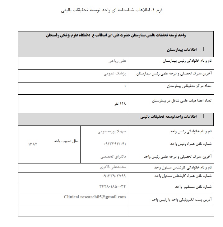 آدرس: رفسنجان _میدان علی ابن ابیطالب_بیمارستان علی ابن ابیطالب _قسمت آموزشی-پژوهشی بیمارستان